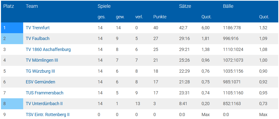 Mit dem letzten Sieg kletterten sie in der Tabelle nochmal um einen Platz nach oben - Tabellenplatz 6 - und liesen den TUS Frammersbach, der Absteiger von oben und einzigen Konkurrenten aus dem Main-Spessart, hinter sich.
