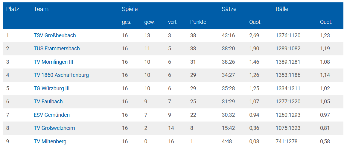 Die neue Ligeneinteilung aufgrund der Meldezahlen der Teams hat schließlich jedoch dazu geführt, dass nicht nur der TV Miltenberg nachträglich in die nächsthöhere Liga berufen wurde, sondern auch die Volleyball-Damen des ESV Gemünden aufgestiegen sind.